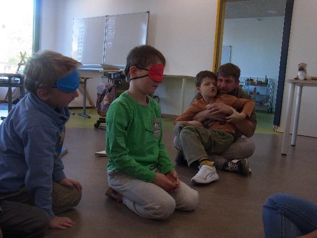 Mutig haben wir uns Augenbinden aufgesetzt und unsere Hände „sehen“ lassen, das war richtig interessant! Kleine Künstlerinnen und Künstler gibt es auch unter uns, wie man hier bestaunen kann!