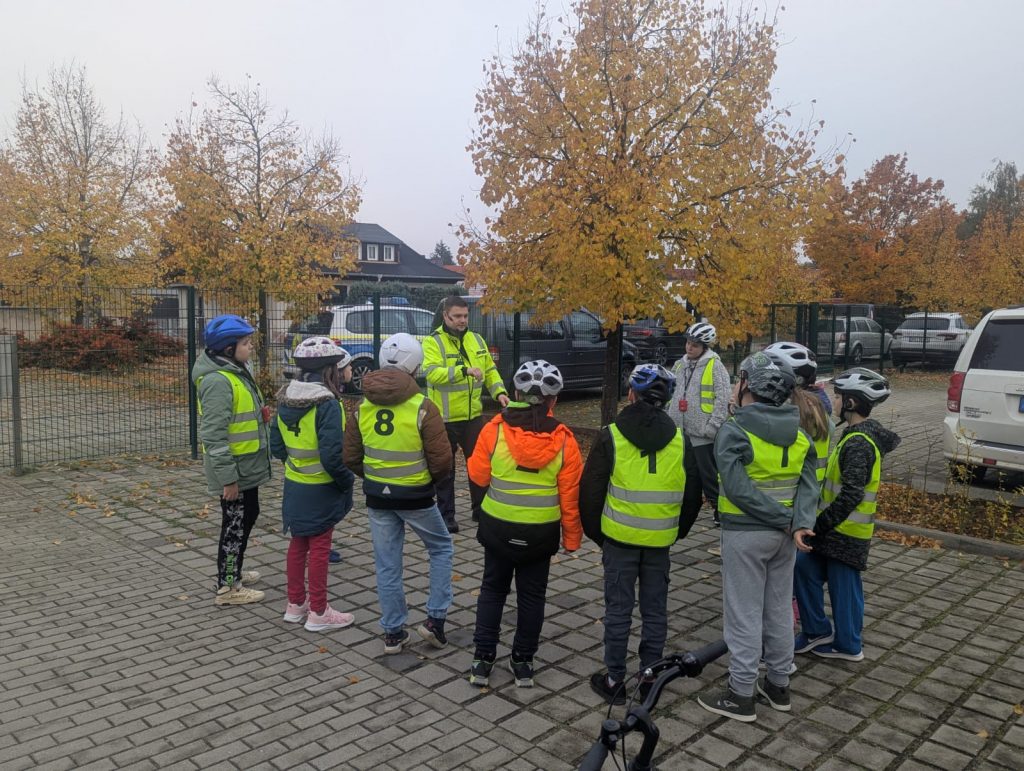 Doch damit nicht genug: Am 13. Oktober wurde es ernst, die praktische Prüfung rief. Und wer könnte das besser begleiten als die Polizei höchstpersönlich? Schon die bloße Anwesenheit der Uniformen ließ die Nervosität kurzzeitig den Puls hochschalten. Nach einer kurzen Fragerunde (bei der so mancher noch schnell überlegte, wo rechts und links ist) ging’s los: kleine Gruppen, große Konzentration und jede Menge Pedalpower.