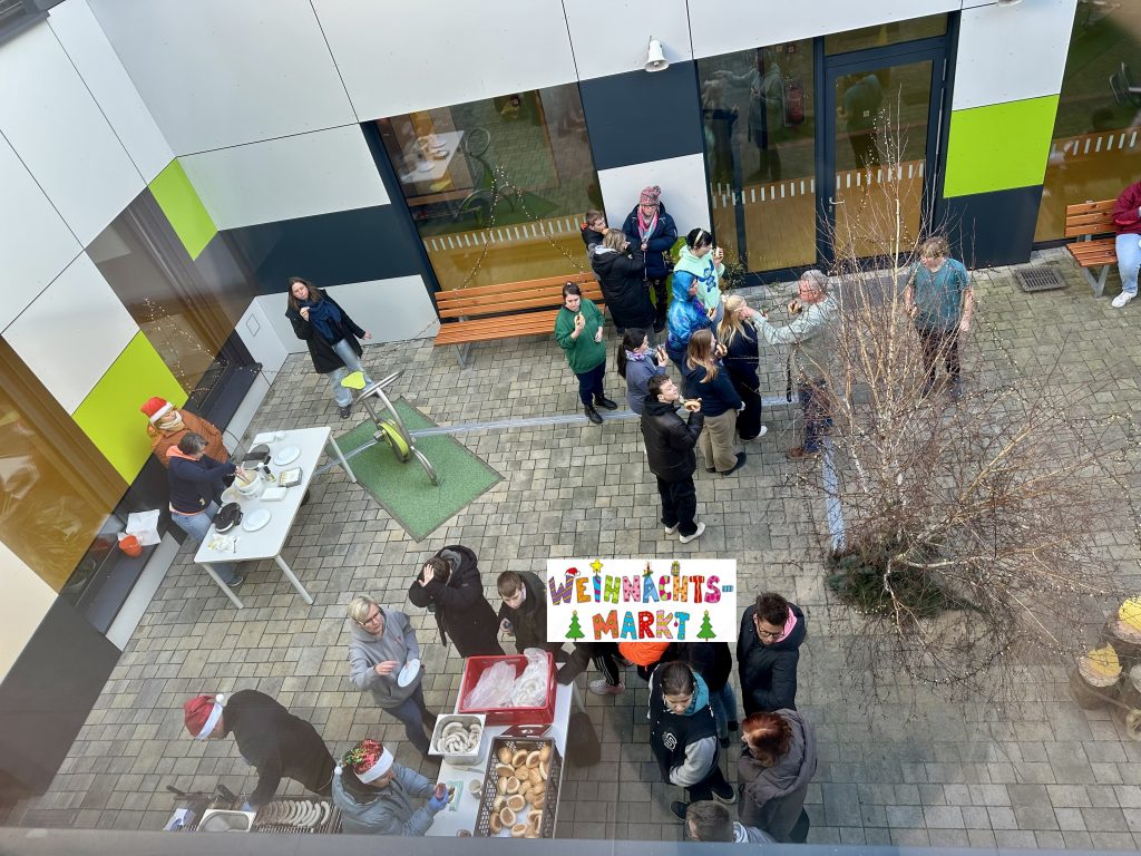 Die Schüler und Schülerinnen der Kranichschule konnten gestern einen schönen Moment des gemeinsamen Miteinanders erleben: Sie nahmen an einem kleinen Weihnachtsmarkt im Innenhof teil, der den Jahresabschluss 2025 stimmungsvoll abrundete. Zwischen duftenden Waffeln, würziger Bratwurst und heißem Kinderpunsch sowie warmem Apfelsaft fand sich für Groß und Klein ausreichend Gelegenheit, die Stimmung zu genießen.