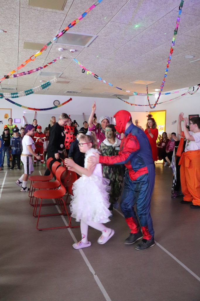 Zur feierlichen Eröffnung verwandelte sich die Mensa in einen glamourösen Catwalk. Unter tosendem Applaus präsentierten sich alle Teilnehmerinnen und Teilnehmer auf dem Laufsteg. Anschließend hieß es: „Groß gegen Klein!“. Beim Stuhltanz wurde gerannt und taktvoll (oder weniger taktvoll) um die begehrten Sitzplätze gekämpft. Beim „Um-die-Wette-Verkleiden“ zeigte sich dann wahre Teamarbeit und erstaunliche Geschwindigkeit beim Anlegen von Perücken, Hüten und Accessoires. Das Ergebnis? In beiden Spielen durften sich die Schülerinnen und Schüler als Sieger feiern lassen. Sehr zur Freude aller, denn an Karneval gewinnt am Ende sowieso die gute Laune! Danach öffneten sich die Türen zu einem bunten Aktivitäten-Paradies. Schminken, Dosenwerfen, Konfettiparcours, Sockenklau und die „tickende Paketbombe“, bei der das Herz mindestens so schnell klopfte wie die Musik in der Disco nebenan. Zum großen Finale schlängelte sich eine fröhliche Polonaise durch das gesamte Schulgebäude. Mit Musik, Gelächter und einer langen, bunten Menschenkette zogen alle durch die Flure. Ein würdiger Abschluss für einen rundum gelungenen Tag.